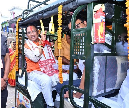 रायपुर /रक्षाबंधन के पावन अवसर पर मुख्यमंत्री श्री विष्णुदेव साय ने जशपुर जिले के गृहग्राम बगिया से जशपुर एक्सप्रेस का शुभारंभ किया और बिहान योजना से जुड़ी 12 दीदियों को राखी के उपहार स्वरूप ई-रिक्शा प्रदान किए। इस अवसर पर मुख्यमंत्री श्री साय ने स्वयं स्व-सहायता समूह की महिला श्रीमती गिलसोनिका पाण्डे के ई-रिक्शा में बैठकर बगिया निवास परिसर की यात्रा की।