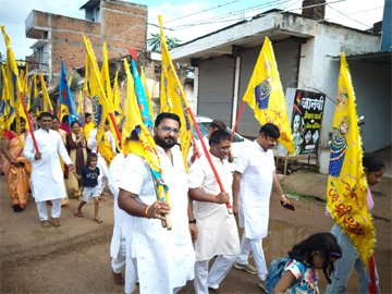 थानखम्हरिया:- नगर में प्रतिवर्ष की भांति इस वर्ष भी खाटू श्याम की भव्य निशान यात्रा बड़े ही धूमधाम और श्रद्धाभाव के साथ निकाली गई। आशीष बंसल एवं हरि अग्रवाल के सौजन्य से आयोजित यह धार्मिक यात्रा नगर की आस्था का प्रमुख केंद्र बनी रही। उनके निवास में सजे दिव्य खाटू श्याम दरबार ने श्रद्धालुओं को भक्ति रस में सराबोर कर दिया।