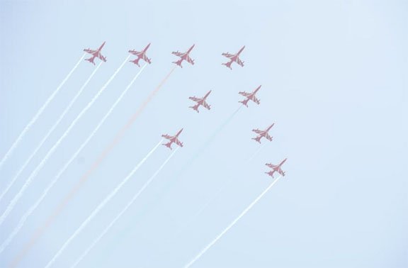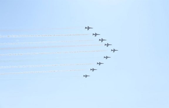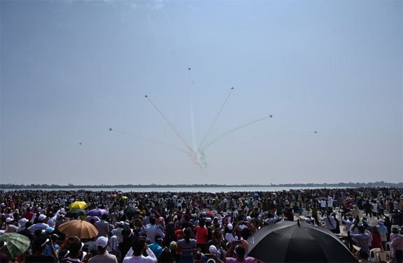 अनुशासन, परस्पर विश्वास, सटीकता और देशप्रेम के जज्बे के साथ वायु सेना के विमानों ने दिखाई कलाबाजी