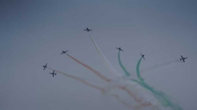 वायु सेना के जाबांज फाइटर पायलटों ने आसमान में दिल की आकृति बनाकर 25वें राज्योत्सव की शुभकामनाएं दीं। उन्होंने तिरंगे के तीन रंगों से डीएनए की आकृति बनाकर तिरंगे के प्रति अपना सम्मान प्रस्तुत किया। उन्होंने 360° में फाइटर जेट उड़ाते हुए उल्टा जेट भी उड़ाया। तेजस और युवाओं को समर्पित अंग्रेजी अक्षर ‘वाई’ की आकृति बनाने के साथ ही कई करतब दिखाए। टीम का प्रदर्शन केवल मनोरंजन नहीं, बल्कि युवाओं में देशप्रेम, साहस और भारतीय सशस्त्र बलों में सेवा की प्रेरणा जगाने का संदेश भी देता है।