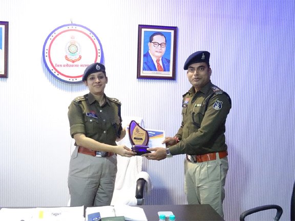 ● पुलिस अधीक्षक श्रीमती भावना गुप्ता द्वारा प्रशस्ति पत्र एवं प्रतीक चिन्ह देकर किया गया सम्मानित