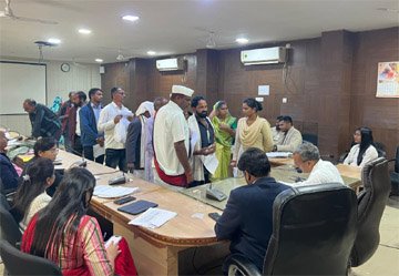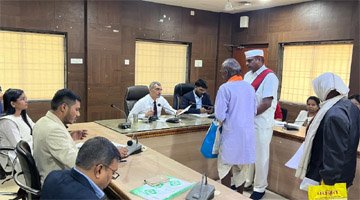 बेमेतरा /- कलेक्टर श्री रणबीर शर्मा की उपस्थिति में आज मंगलवार को समय-सीमा की बैठक के बाद कलेक्टरेट के दृष्टि सभा कक्ष में जनदर्शन आयोजित की गई। जिसमें जिले के अलग-अलग क्षेत्र के लोग अपनी-अपनी मांग, समस्याएं एवं शिकायतें लेकर आये। इस दौरान जनदर्शन में आने वाले सभी लोगों की समस्याओं का निराकरण भी किया गया। आज के जन चौपाल में कलेक्टर ने लोगों की समस्याओं को गौर से सुना और संबंधित अधिकारियों से दूरभाष पर और समक्ष बुलाकर संबंधित आवेदनों का त्वरित निराकरण करने के निर्देश दिए। कुछ आवेदन मौके पर ही निराकरण किए गए। आज जनदर्शन में विभिन्न शिकायत एवं समस्याओं से संबंधित 16 आवेदन प्राप्त हुए। तात्कालिक महत्व की समस्याओं का जहां त्वरित निराकरण किया। वहीं गंभीर और जांच के आवेदनों को टीएल पंजी पर दर्ज करके, इनका निराकरण करने के निर्देश संबंधित अफसरों को दी।