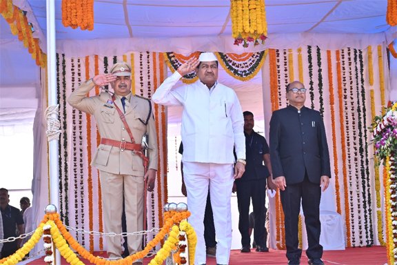 गरियाबंद /जिले में राष्ट्रीय पर्व गणतंत्र दिवस 26 जनवरी हर्षाेल्लास के साथ मनाया गया। पुलिस परेड ग्राउंड में आयोजित जिला स्तरीय गणतंत्र दिवस समारोह में मुख्य अतिथि खाद्य एवं नागरिक आपूर्ति एवं उपभोक्ता संरक्षण विभाग के मंत्री श्री दयाल दास बघेल ने ध्वजारोहण कर परेड की सलामी ली। इसके बाद मुख्य अतिथि श्री बघेल ने कलेक्टर श्री बी.एस. उइके एवं वरिष्ठ पुलिस अधीक्षक श्री वेदव्रत सिरमौर के साथ परेड का निरीक्षण किया। तत्पश्चात श्री बघेल ने जनता के नाम मुख्यमंत्री श्री विष्णुदेव साय के संदेश का वाचन किया। हर्ष तथा खुशहाली के प्रतीक गुब्बारे आसमान में छोड़े गये। इस अवसर पर मुख्य अतिथि द्वारा शहीदों के परिजनों को शॉल और श्रीफल से सम्मानित किया गया। कार्यक्रम में स्कूली छात्र-छात्राओं ने छत्तीसगढ़ी संस्कृति और परंपरा तथा देशभक्ति से ओतप्रोत आकर्षक सांस्कृतिक कार्यक्रम प्रस्तुत किया। साथ ही विभागों ने आकर्षक झांकी प्रस्तुत किए।