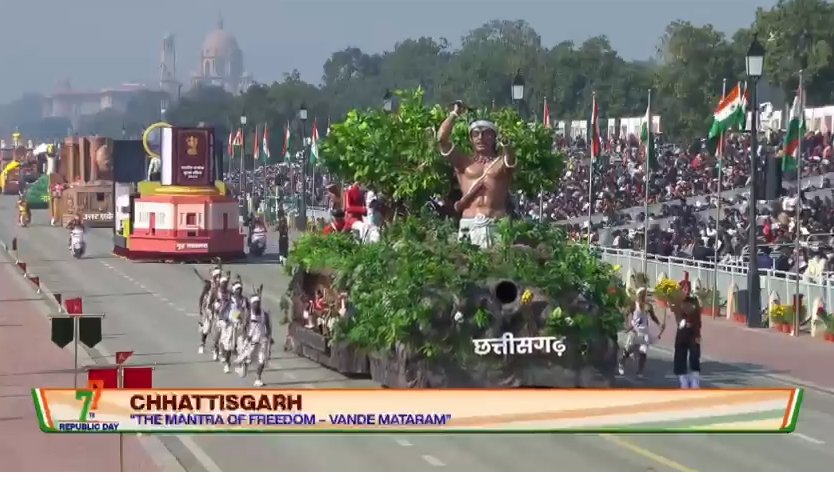 पूरी झांकी जनजातीय समाज के अदम्य साहस, बलिदान और देशभक्ति की भावना को सशक्त रूप में अभिव्यक्त करती रही और गणतंत्र दिवस परेड में छत्तीसगढ़ की गौरवपूर्ण पहचान को राष्ट्रीय मंच पर स्थापित किया।