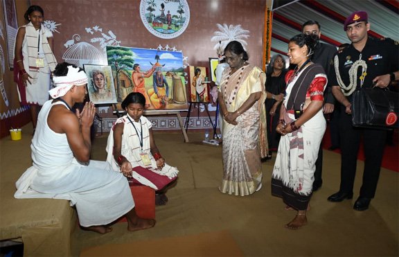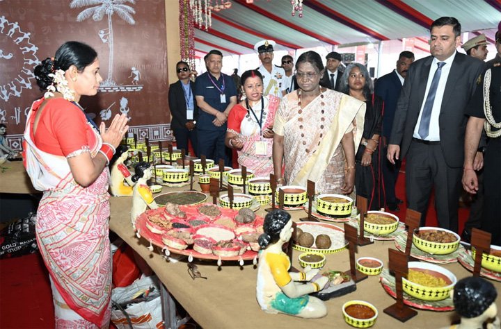 रायपुर /बस्तर पंडुम के शुभारंभ समारोह में शामिल होने पहुंचीं राष्ट्रपति श्रीमती द्रौपदी मुर्मु ने आज बस्तर की माटी की सुगंध और आदिम जनजातीय परंपराओं पर आधारित भव्य प्रदर्शनी का अवलोकन किया। इस दौरान राष्ट्रपति ने विभिन्न स्टॉलों का भ्रमण कर वहां मौजूद स्थानीय निवासियों और कारीगरों से प्रदर्शित कलाओं एवं उत्पादों की विस्तृत जानकारी ली।