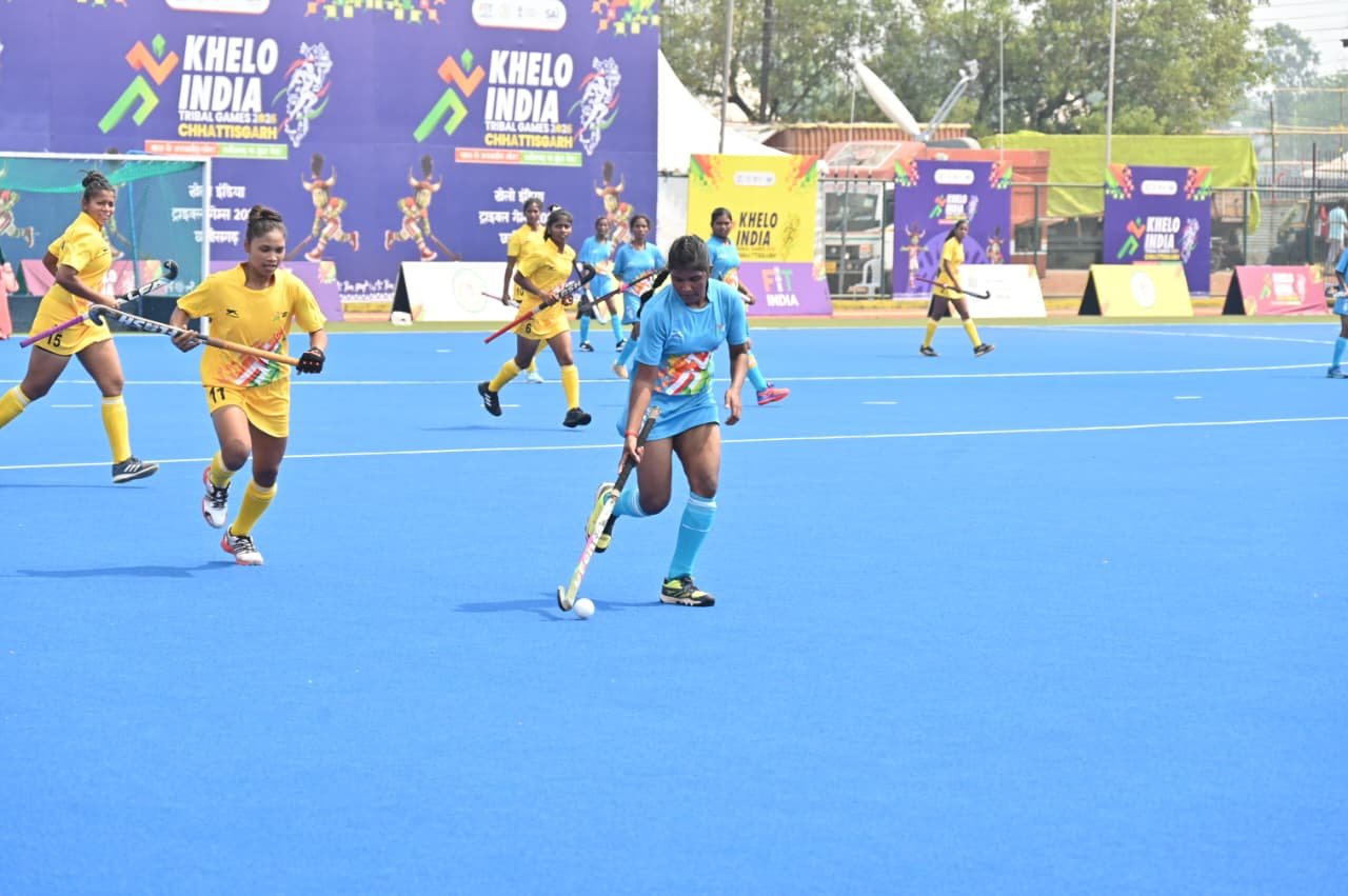 रायपुर / खेलो इंडिया ट्राइबल गेम्स के अंतर्गत राजधानी रायपुर स्थित सरदार वल्लभभाई पटेल इंटरनेशनल हॉकी स्टेडियम में आज तीसरे दिन महिला हॉकी प्रतियोगिता के मुकाबले खेले गए।