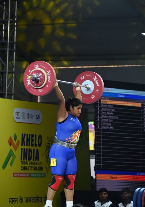 रायपुर। खेलो इंडिया ट्राइबल गेम्स 2026 में छत्तीसगढ़ की बेटी निकिता ने राज्य को पहला स्वर्ण पदक दिलाकर इतिहास रच दिया है। राजधानी रायपुर स्थित पंडित रविशंकर शुक्ल विश्वविद्यालय परिसर में आयोजित इस प्रतिष्ठित प्रतियोगिता में निकिता ने महिला 77 किलोग्राम भारोत्तोलन वर्ग में उत्कृष्ट प्रदर्शन करते हुए कुल 160 किलोग्राम वजन उठाकर प्रथम स्थान हासिल किया।