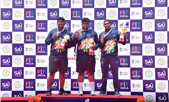 मैदानी स्पर्धाओं में शक्ति प्रदर्शन का दौर जारी रहा, जहाँ पुरुष वर्ग की तवा फेंक (डिस्कस थ्रो) स्पर्धा में गुजरात के मकवाना दानिश दिलीपभाई ने 44.83 मीटर की दूरी तय कर स्वर्ण पदक जीता। छत्तीसगढ़ के लिए गौरव का क्षण तब आया जब स्थानीय खिलाड़ी सिद्धार्थ नागेश ने 35.56 के स्कोर के साथ रजत पदक जीतकर घरेलू दर्शकों का उत्साह बढ़ा दिया। तीसरे स्थान पर ओड़िसा के चंद्रय मुर्मू रहे ।