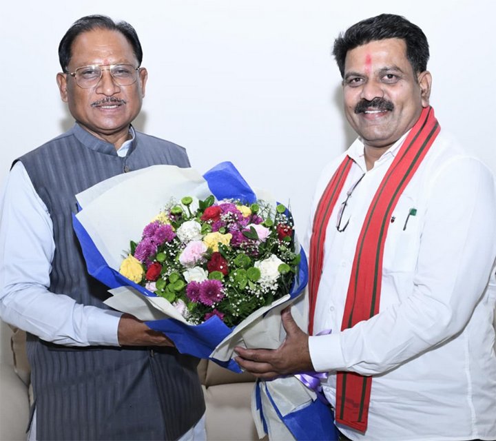 रायपुर /छत्तीसगढ़ में नक्सलवाद की समाप्ति की दिशा में मिली ऐतिहासिक सफलता के बीच आज मुख्यमंत्री श्री विष्णुदेव साय से उनके नवा रायपुर स्थित निवास कार्यालय में उपमुख्यमंत्री श्री विजय शर्मा ने सौजन्य मुलाकात की। इस अवसर पर श्री शर्मा ने मुख्यमंत्री को नक्सलवाद के खात्मे की दिशा में मिली इस बड़ी उपलब्धि पर बधाई देते हुए पुष्पगुच्छ भेंट कर उनका अभिनंदन किया।