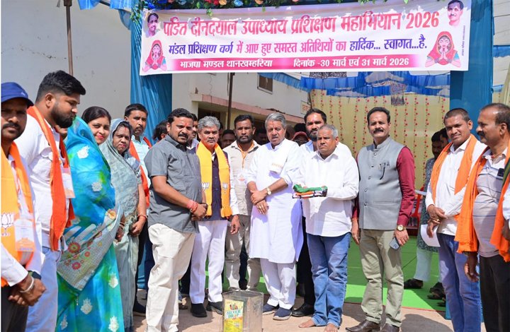 थान खमरिया। समीप ग्राम मां चंडी धाम करमू, स्वामी शंकराचार्य परिसर में आयोजित दो दिवसीय पंडित दीनदयाल उपाध्याय प्रशिक्षण अभियान 2026 का समापन मंगलवार को हुआ। इस प्रशिक्षण शिविर में सैकड़ों पदाधिकारियों एवं कार्यकर्ताओं ने भाग लेकर संगठनात्मक, वैचारिक एवं प्रबंधन संबंधी महत्वपूर्ण जानकारी प्राप्त की।