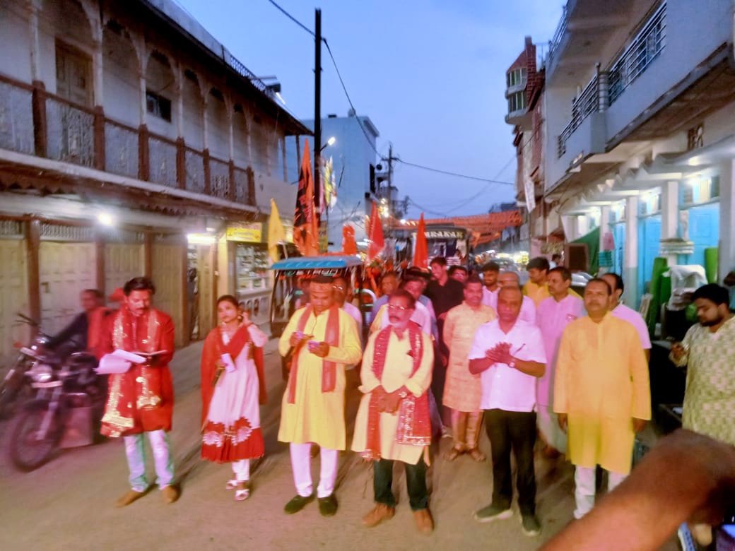 इस पवित्र आयोजन का शुभ कार्य सेठ फूलचंद घनश्याम लाल सिंघानिया परिवार द्वारा सपत्नीक संपन्न कराया गया। कार्यक्रम के तहत पूजा-अर्चना, कलश स्थापना एवं भव्य कलश यात्रा निकाली गई। कलश यात्रा में श्रद्धालुओं का उत्साह देखते ही बन रहा था, पूरे नगर में जयकारों की गूंज सुनाई दी।