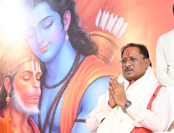 रायपुर / मुख्यमंत्री श्री विष्णुदेव साय आज श्री हनुमान जन्मोत्सव के पावन अवसर पर राजधानी रायपुर के स्टेशन चौक स्थित नर्मदा कुंड राम जानकी मंदिर में आयोजित श्री हनुमान उत्सव एवं श्री राम कथा कार्यक्रम में शामिल हुए। इस अवसर पर मुख्यमंत्री ने कहा कि प्रभु श्री राम के अनन्य भक्त श्री हनुमान का जीवन हम सभी के लिए प्रेरणादायक है। बल, बुद्धि और विद्या के दाता हनुमान जी हमें सिखाते हैं कि हमारे जीवन में निष्ठा, सेवा और समर्पण कैसा होना चाहिए।