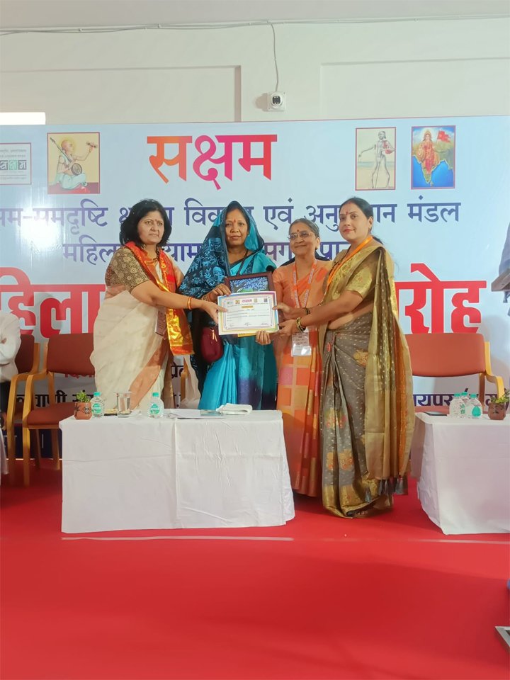 आज सेमरीया, कोपलवानी में आयोजित कार्यक्रम में श्रीमती कौशल्या साय जी (धर्मपत्नी श्री विष्णु देव जी, माननीय मुख्यमंत्री) के करकमलों द्वारा श्रीमती सीमा सोनी को दिव्यांगता एवं बाल विकास के क्षेत्र में उत्कृष्ट कार्यों के लिए “सक्षम सेवा सम्मान” से सम्मानित किया गया।
