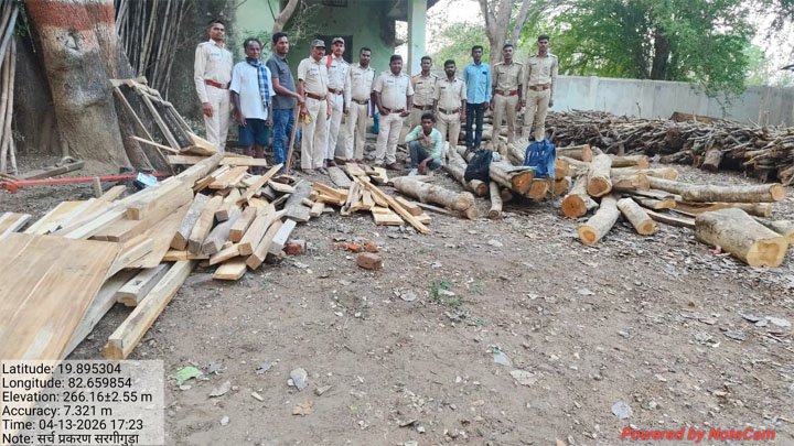 गरियाबंद, / वन विभाग ने देवभोग क्षेत्र में अवैध लकड़ी भंडारण के खिलाफ बड़ी कार्रवाई करते हुए भारी मात्रा में सागौन (टीक) की लकड़ी जब्त की है। यह कार्रवाई मुख्य वनसंरक्षक रायपुर वृत्त के निर्देश पर एवं वनमंडलाधिकारी गरियाबंद के मार्गदर्शन में की गई। प्राप्त जानकारी के अनुसार उप वनमंडलाधिकारी देवभोग द्वारा जारी सर्च वारंट के आधार पर वन परिक्षेत्र इंदागांव अंतर्गत ग्राम सरगीगुड़ा में दो अलग-अलग स्थानों पर छापामार कार्रवाई की गई। पहली कार्रवाई में रक्षानंद ठाकुर के घर एवं बाड़ी की तलाशी ली गई, जहां से 60 नग सागौन चिरान (0.354 घन मीटर) तथा 17 नग सागौन लट्ठा (0.608 घन मीटर) अवैध रूप से रखा हुआ पाया गया। वन विभाग ने उक्त लकड़ी को जब्त कर वन अपराध प्रकरण दर्ज किया।