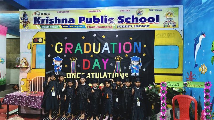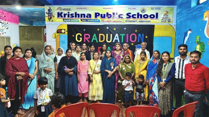थान खम्हरिया। श्रीकृष्णा पब्लिक स्कूल में आज PTM के साथ दीक्षांत समारोह (Graduation Ceremony) का भव्य आयोजन किया गया। कार्यक्रम में मुख्य अतिथि के रूप में सभी सम्माननीय अभिभावक उपस्थित रहे। कार्यक्रम की शुरुआत मां सरस्वती जी के चित्र पर दीप प्रज्वलन के साथ की गई।