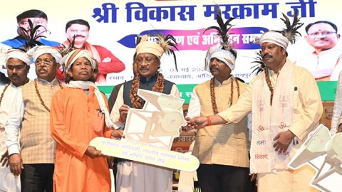 रायपुर / मुख्यमंत्री श्री विष्णु देव साय आज राजधानी रायपुर स्थित पंडित दीनदयाल उपाध्याय आडिटोरियम में छत्तीसगढ़ आदिवासी स्थानीय स्वास्थ्य परंपरा एवं औषधि पादप बोर्ड के नव नियुक्त अध्यक्ष श्री विकास मरकाम के पदभार ग्रहण एवं अभिनंदन समारोह में मुख्य अतिथि के रूप में शामिल हुए। इस अवसर पर उन्होंने श्री मरकाम को नई जिम्मेदारी के लिए बधाई एवं शुभकामनाएं दी।
