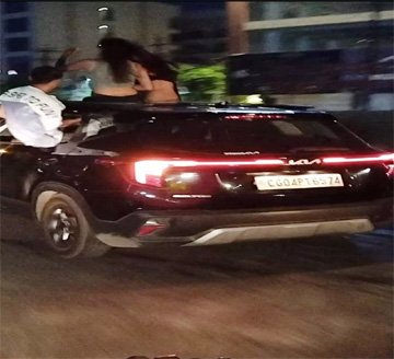 रायपुर। राजधानी रायपुर में ट्रैफिक नियमों की अनदेखी लगातार बढ़ती जा रही है। सोशल मीडिया पर एक वीडियो तेजी से वायरल हो रहा है जिसमें दो युवतियां और एक युवक एक कार के सनरूफ से बाहर निकलकर स्टंट करते दिख रहे हैं। यह कार रायपुर की बताई जा रही है। यह वीडियो तेलीबांधा वीआईपी रोड, राम मंदिर के सामने का है। जानकारी के अनुसार, युवक और युवतियां वीआईपी रोड के एक चर्चित फार्म्स से शराब पार्टी करके निकले थे और रास्ते में कार में खतरनाक स्टंटबाजी करने लगे।
