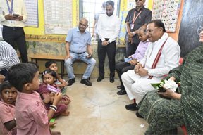 बच्चों से आत्मीयता से मिले, आंगनबाड़ी की व्यवस्थाओं का लिया जायजा