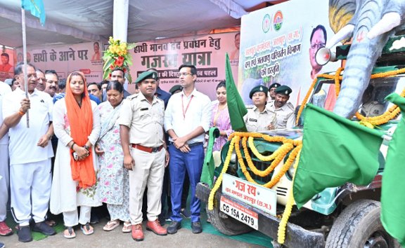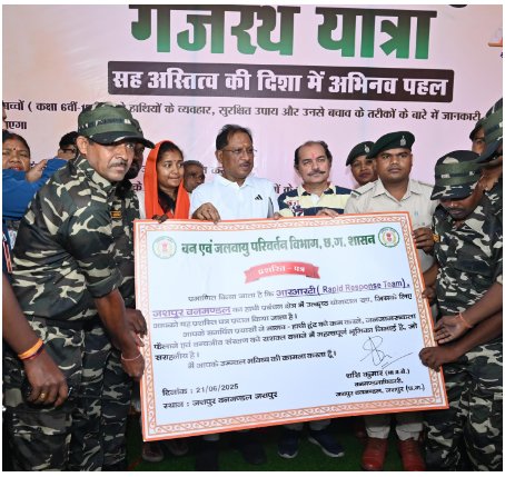 रायपुर /अंतरराष्ट्रीय योग दिवस के अवसर पर मुख्यमंत्री श्री विष्णु देव साय ने आज जशपुर के रणजीता स्टेडियम परिसर में आयोजित कार्यक्रम में ‘गजरथ यात्रा’ को हरी झंडी दिखाकर शुभारंभ किया। यह अभिनव पहल छत्तीसगढ़ में मानव-हाथी द्वंद को कम करने और वन्यजीव संरक्षण के लिए जनजागरूकता फैलाने के उद्देश्य से शुरू की गई है। इस यात्रा के माध्यम से स्कूलों, ग्राम पंचायतों और हाट-बाजारों में पहुंचकर हाथियों के व्यवहार, सुरक्षा उपायों और सह-अस्तित्व के संदेश को जन-जन तक पहुंचाया जाएगा।